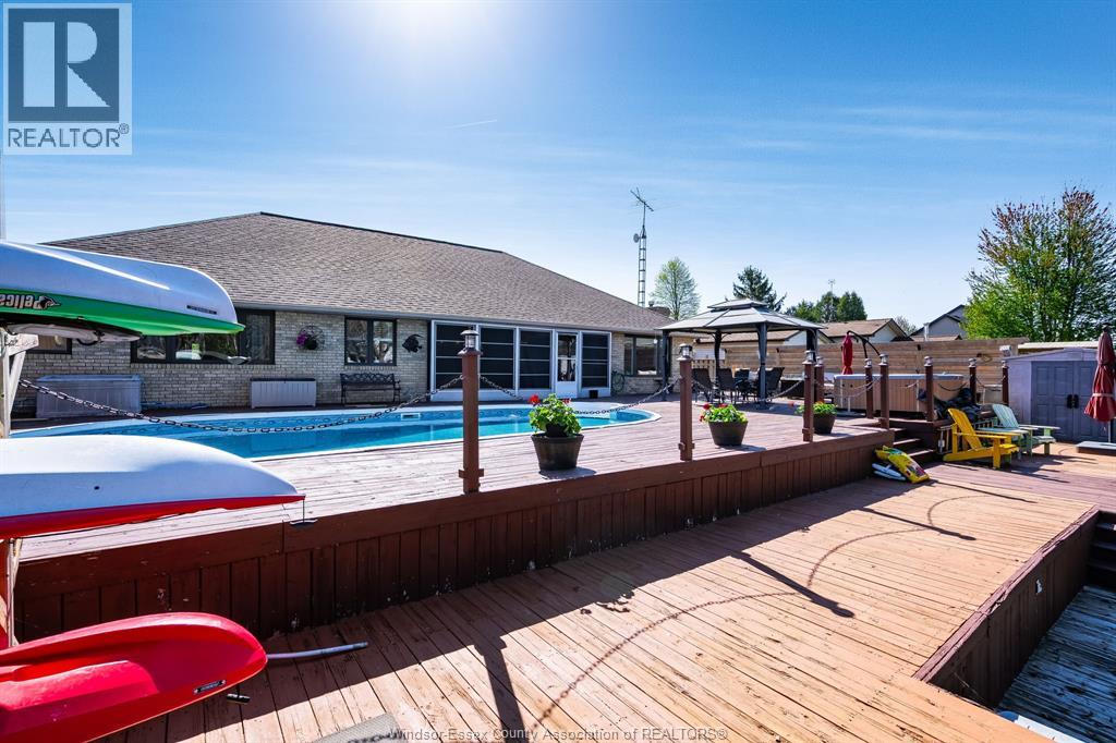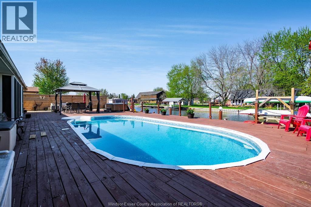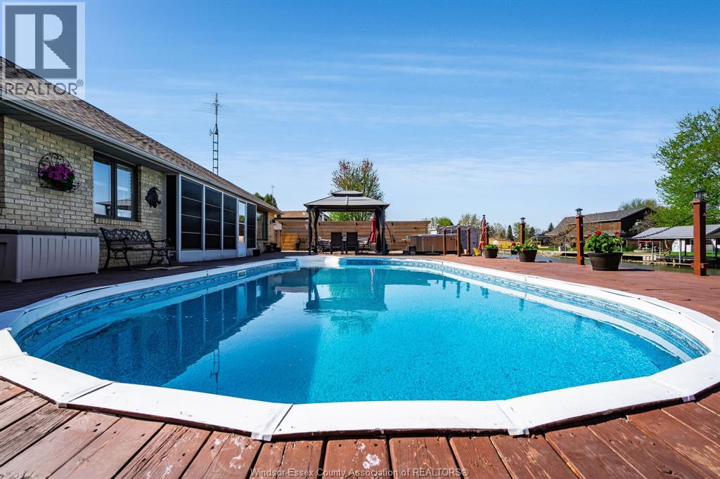 Enjoy waterfront living in beautiful Lighthouse Cove located on Lake St Clair. Custom built almost 2000Enjoy waterfront living in beautiful Lighthouse Cove located on Lake St Clair. Custom built almost 2000 sq ft Brick Ranch features 3 bedrooms and 2.5 baths including master ensuite overlooking the canal. A spacious, well thought out layout greets you as you enter the covered front porch. Main floor formal living room with soaring ceilings, open concept heart of the home with renovated large kitchen with island and additional wall of cabinets for storage, dining area and family room overlooking your entertainers backyard. An attached 3 season sunroom off the back of the home opening onto your deck complete with hot tub, 16x32 heated pool with new pump and liner (2023), gazebo and 80 feet of dock with step downs and hydro for all your toys. Attached double garage and interlocking brick driveway. Full concrete crawl space perfect for storage. Park your boats in your backyard and enjoy fishing, boating, beautiful sunsets or drive around the community in your golf cart! (id:4555)