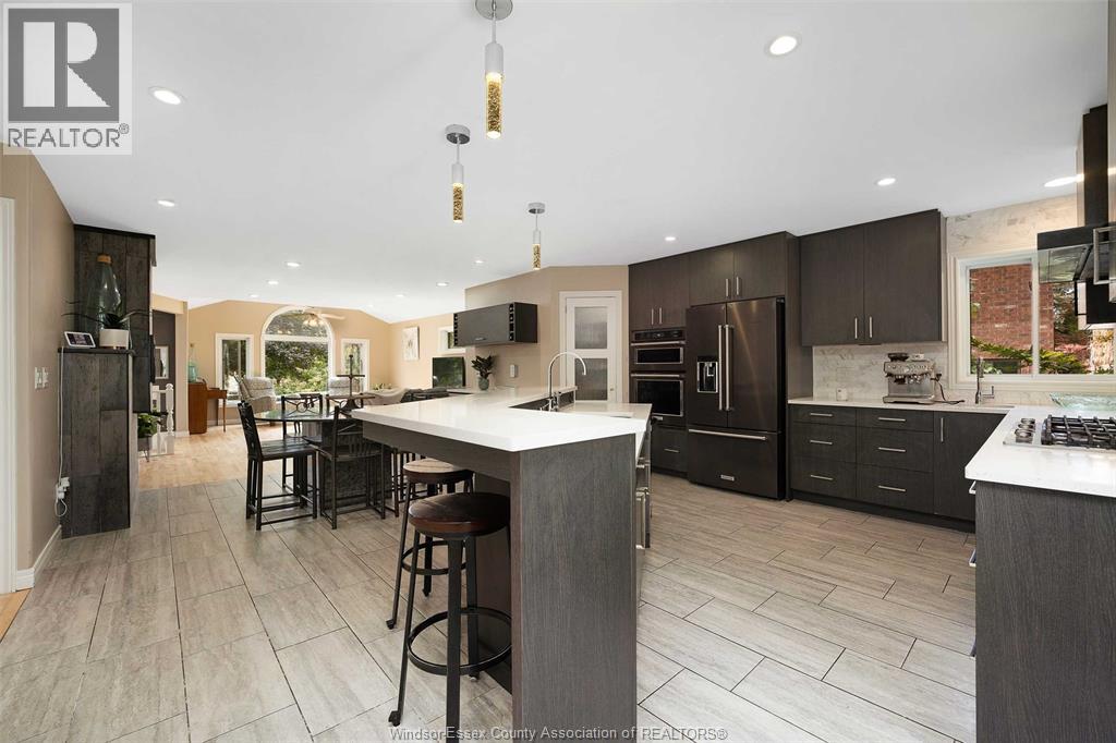Step into your dream home at 3514 Bruce, Windsor! This stunning brick-roof ranch offers the perfect blend of space, style, and functionality. Featuring 3+1 bedrooms and 3 full baths, including a primary suite with an ensuite bath, this home is designed for comfort and convenience. The modern kitchen boasts built-in appliances, a walk-in pantry, an eatat island, and a cozy coffee bar—ideal for family dinners and entertaining alike. The bright living room with vaulted ceilings and a gas fireplace creates a warm, inviting atmosphere. The lower level offers a versatile in-law suite with a second kitchen, bedroom, family room, and additional bath—perfect for multi-generational living or rental income. Step outside to your backyard oasis, complete with an in-ground saltwater pool, covered patio, tiki bar, and multiple seating areas—perfect for summer gatherings and outdoor fun. Recent updates include new kitchen cabinets & appliances, flooring, paint, furnace, central air, tankless hot water heater, and pool liner. Located in a mature neighborhood surrounded by upscale homes and tree-lined streets, this home combines elegance with everyday comfort. (id:4555)