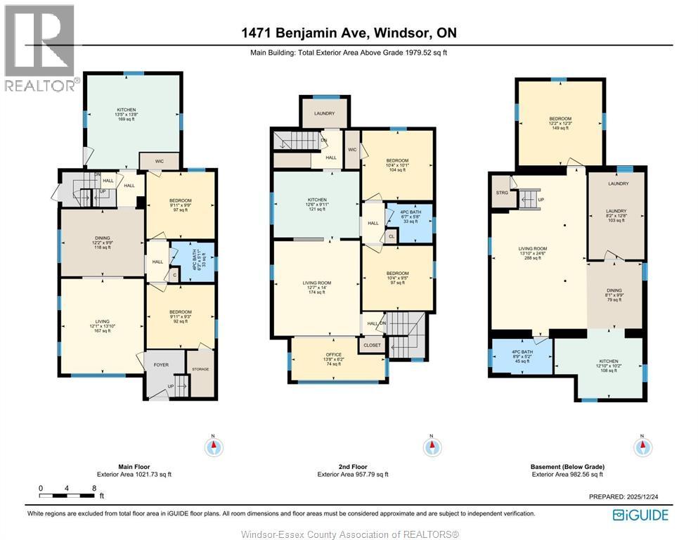 Welcome to 1471 Benjamin, located in the heart of Walkerville on a quiet street (1 block from Ottawa st). Boasting 3 large units (881sqf, 827sqf, 843sqf), each unit equipped with: full bath, kitchen, Laundry (washer/dryer), dining area, and living room. 3 separate Hydro meters. And a 2-car garage at the back. Home is exceptionally well kept and clean, with many updates: roof, fascia, eavestrough w/leaf-guard, downspouts, sewer lines, backwater valve, sump pump, landscaping front & back, efficient heating, updated insulation, etc. Makes great ROI!! Based on average rent in the area of $1,800 per unit, minus yearly expenses of $7,000 (gas, water, insurance, property tax) - estimated net yearly income: $57,800! (id:4555)